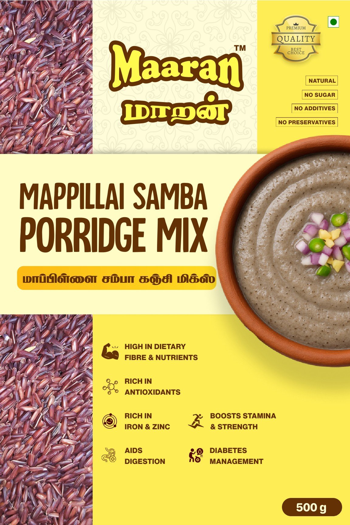 | Maaran Foods blends Tamil tradition with natural nutrition. All products are made from locally sourced grains, free from preservatives, and suitable for all ages. |
